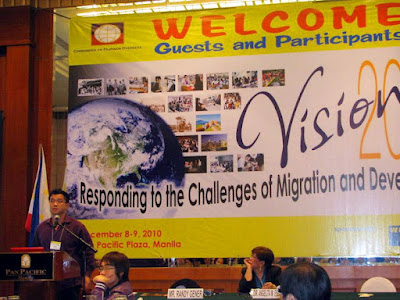 The current Aquino administration has been aiming to undertake public-private partnerships to modernize the infrastructure of the Philippines. Can Filipinos overseas and in the diaspora inspire or respond to the future development of their homeland? In that Philippine setting, I asked: What, if any, is the role of arts and culture in migration and development? How can Filipino artists and arts groups abroad (individuals, networks and organizations overseas) actively participate in the development of Philippine arts and culture, given the fact that whether we like it or not, Filipinos are a global, mobile and diverse people?